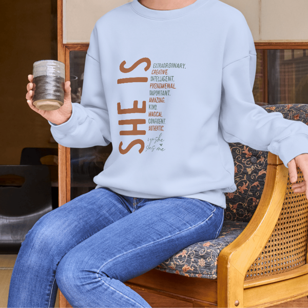 This crewneck sweatshirt carries a quiet confidence — soft, sturdy, and embroidered with a simple affirmation that settles your shoulders and steadies your day. The medium-heavy 50/50 cotton-poly blend feels warm without weight, broken in from the first wear. Tubular knit construction keeps lines smooth and clean, while ribbed collar and double-needle stitching hold shape through repeated washes. Thoughtful details — DTF inner neck labels that won’t scratch, ethically sourced cotton, and OEKO-TEX dyes — make this more than clothing; it’s a trusted layer for routines, slow mornings, and late-night walks. The embroidery options let the message sit where it matters most: over the heart, centered, or on the sleeves. Wear it when you need a quiet reminder, bring it to low-key gatherings, or pull it on after a long day — it settles into your life without demanding attention.